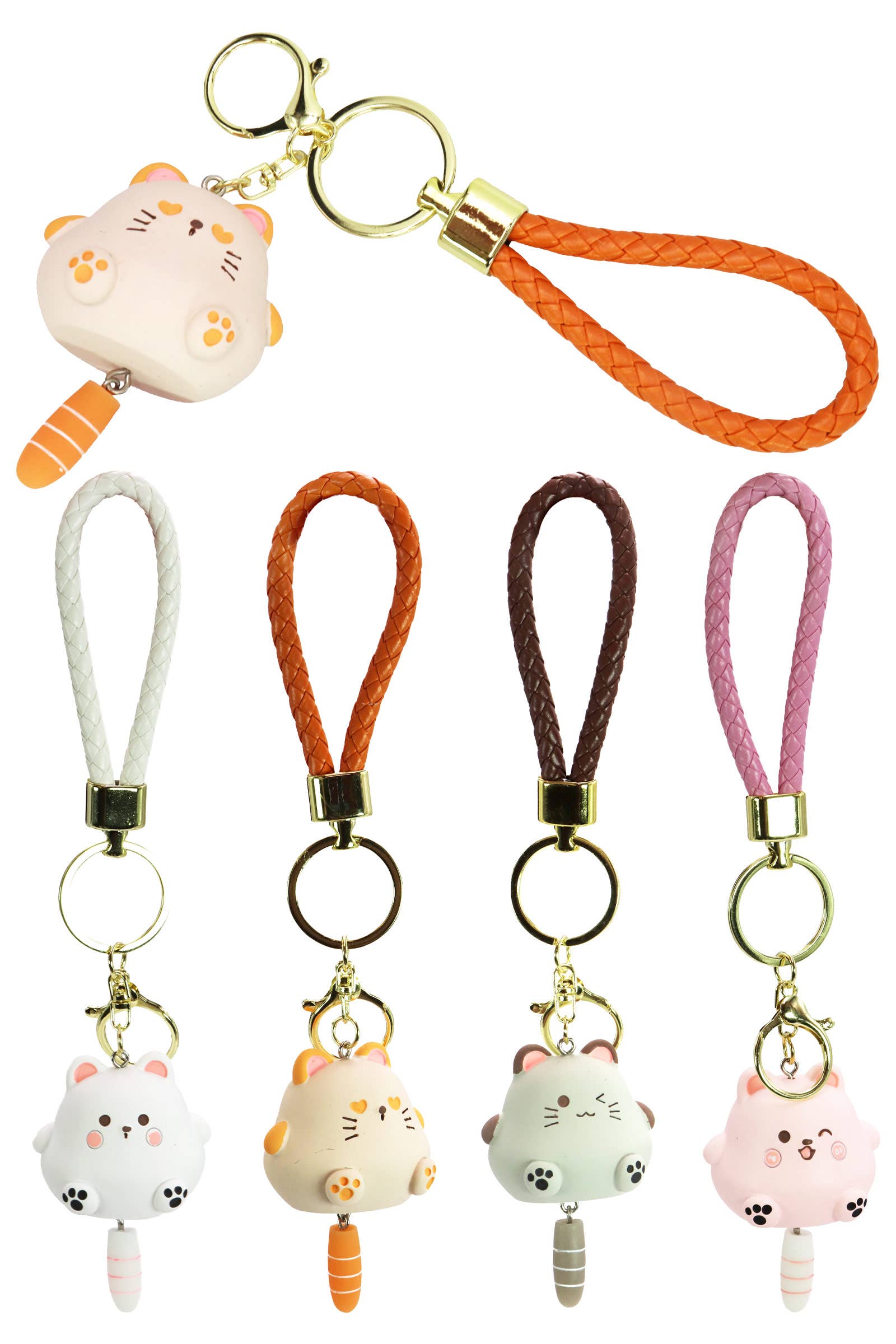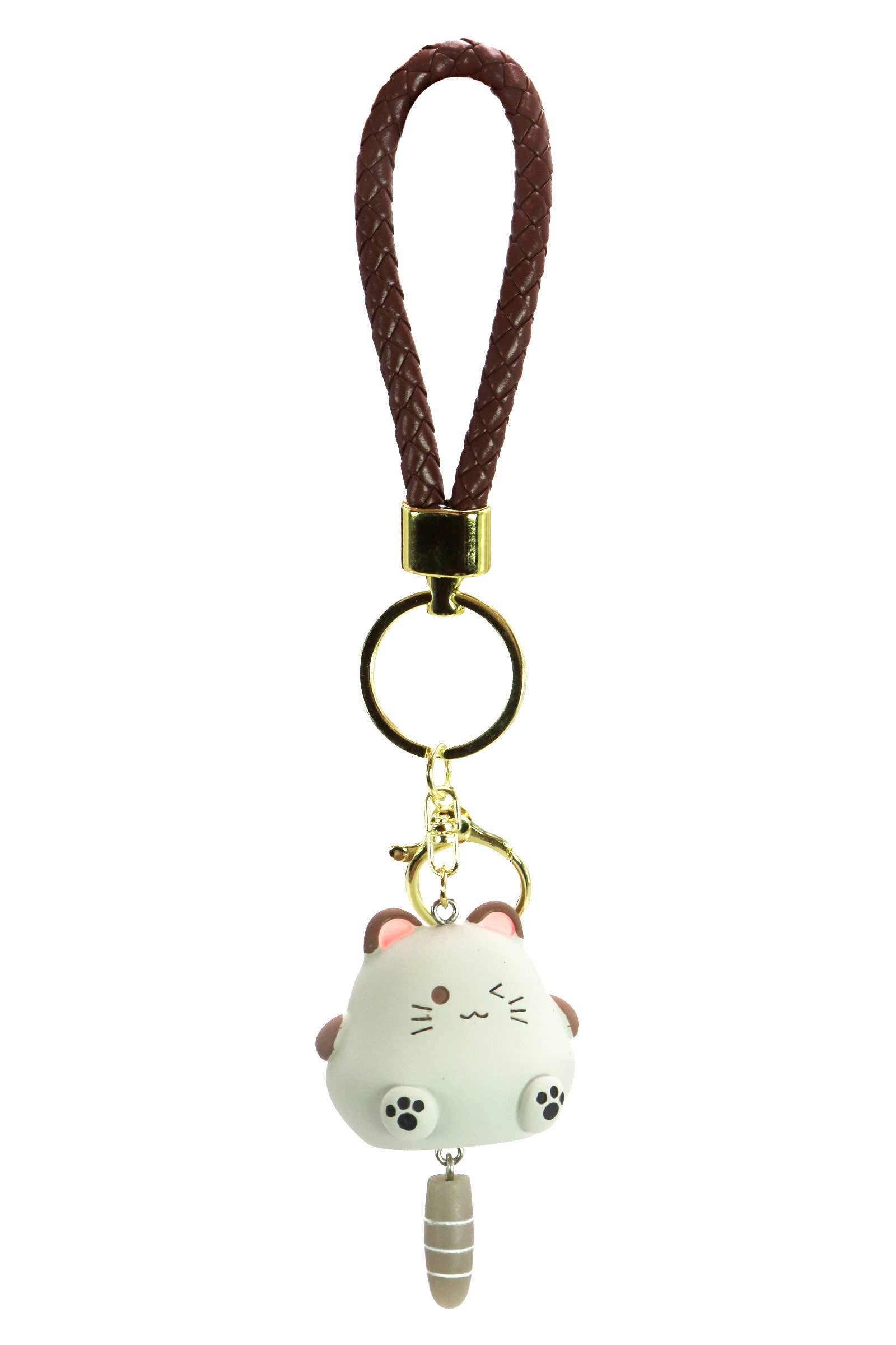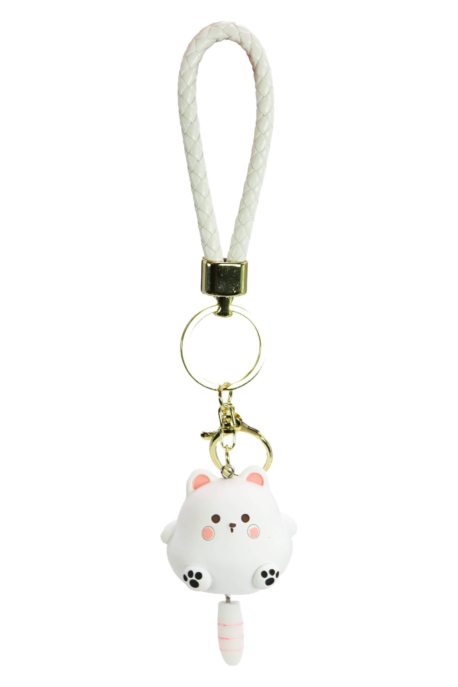 Kawaii Chubby Kitty Cat Matte 3D Resin Novelty Key Ring -Braided Key Ring Carabiner Chain Length: 5.5" -Cat Dimensions: 1.75" * 1.5" * 1.5" (Tail: 1") -100% Resin -CA Prop 65 Advisory -
