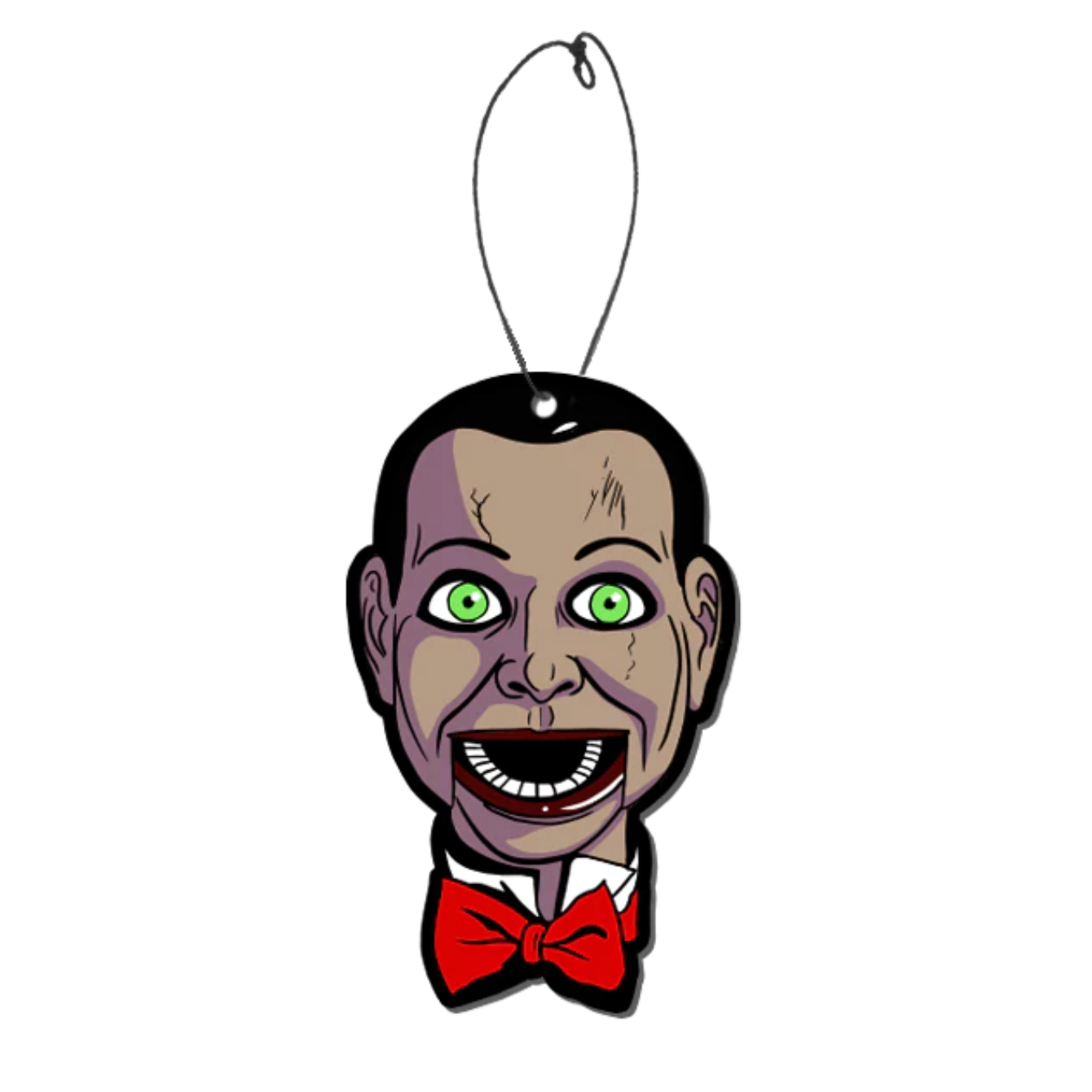 Show your fandom with your very own officially licensed Universal Studios, Dead Silence - Billy Puppet - Fear Freshener! This beautiful, full color, air freshener comes with an elastic band to make it easy to attach to any place you want to smell clean and fresh.