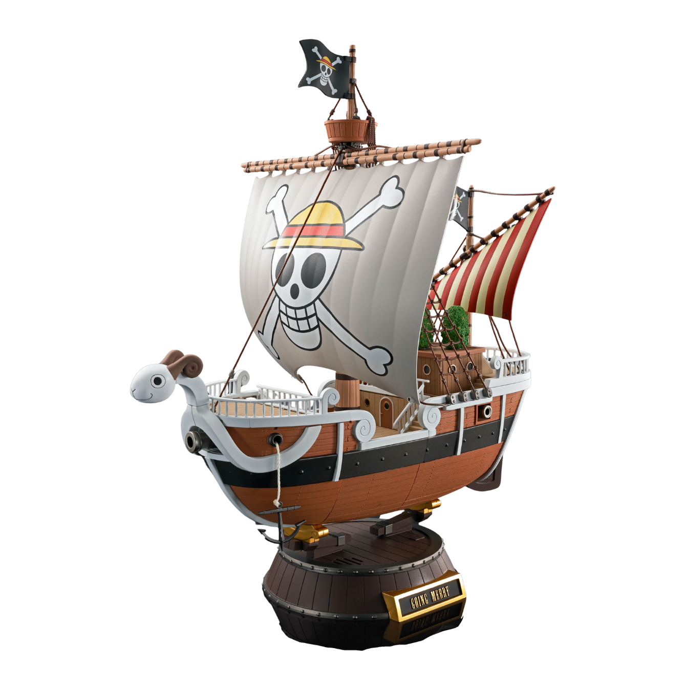 Going Merry'' from the Super Alloy series is now available in the ONE PIECE'' anime 25th anniversary specification! Developed with coloring inspired by the anime. In addition to a sail designed with an anime 25th anniversary illustration, A pedestal that plays "We Are! (TV size)" on the switch and a mini figure of "Luffy" riding on the bow are also included with new modeling! [Set Contents] Body, A set of replacement parts for reproducing the wrecked state, Anime 25th anniversary replacement sail parts, Kura Bauterman (with pedestal), 11 types of mini figures, Lifeboat (large/small), Luffy mini figure, Exclusive pedestal