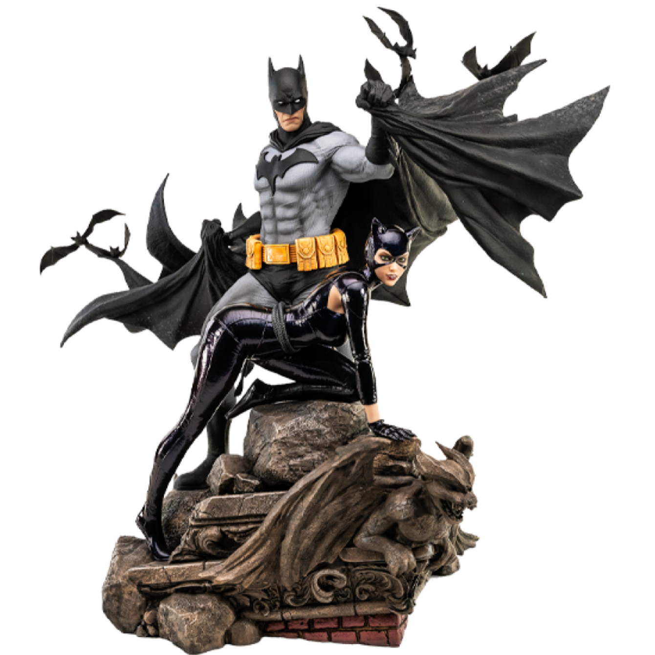 Celebrate one of the most pivotal moments in DC Comics' Batman: City of Bane with this stunning 1:4 scale statue that captures the intense and emotional reunion of Batman and Catwoman. PureArts memorializes the iconic City of Bane issue #78 cover artwork by Tony S. Daniel with a hyper-detailed limited-edition statue portraying Batman in his classic, battle-worn suit while Catwoman poses in her sleek Catsuit atop a Gotham City gargoyle base.