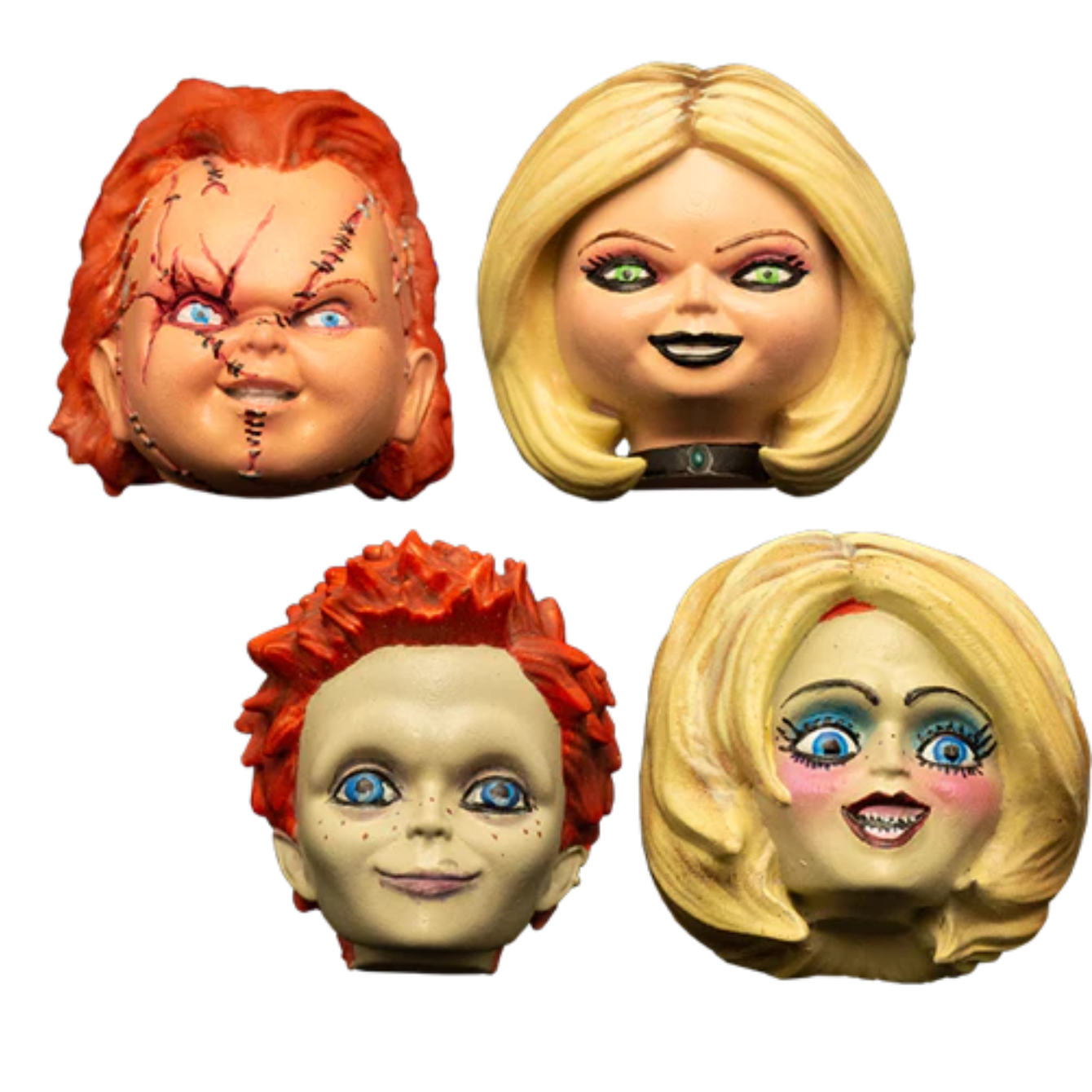Add some horror to your fridge with your very own officially licensed Universal Studios, Seed of Chucky - Magnet Set! This set features all 4 killer dolls, Chucky, Tiffany, Glen and Glenda, painted in full color. The backs are flat with an embedded magnet. Arrives in a collector's box, perfect for displaying or gifting!