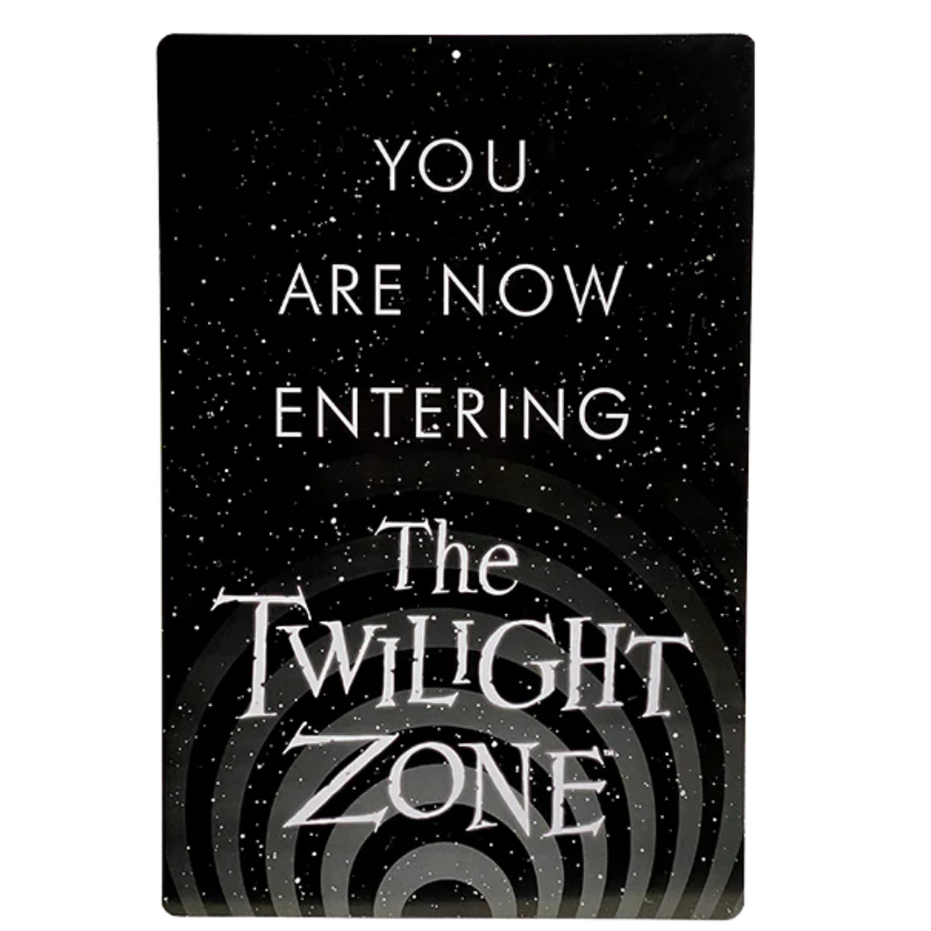 Trick or Treat Studios is proud to present the officially licensed, Twilight Zone - You Are Now Entering the Twilight Zone - Metal Sign. This beautiful sign is made from solid metal with a bright, solid printed design, and has a small hole in the center for easy hanging. Order your You Are Entering the Twilight Zone - Metal Sign now and lead your neighbors to a new reality this Halloween.