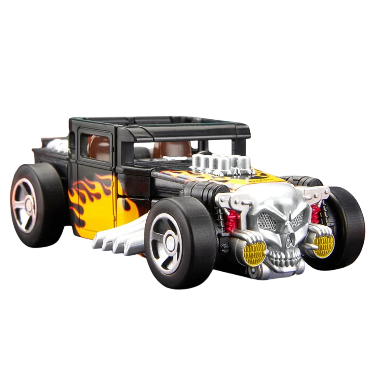 The epic worlds of Transformers robots and Hot Wheels cars collide with the Hot Wheels x Transformers Bone Shaker converting action figure!
