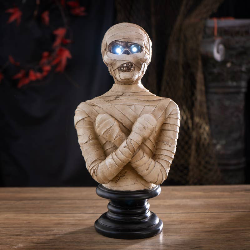 Mummy Bust W/LED Light Product Size: 6.69" X 4.72" X 13.19" Material: Cold Cast