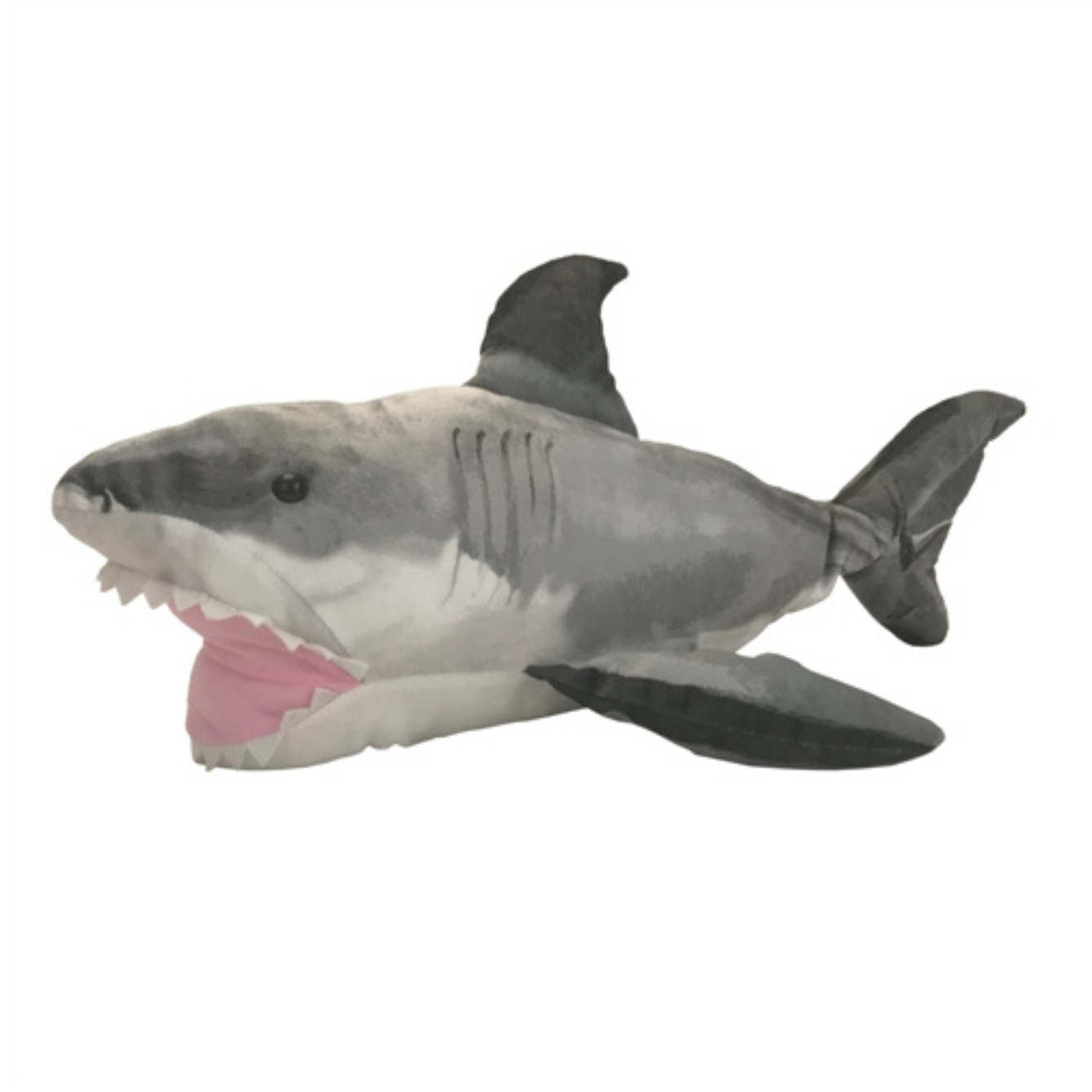 A 26” inch long (66cm) adorable rendition of the famous shark from JAWS, featuring an opening belly with removable contents: