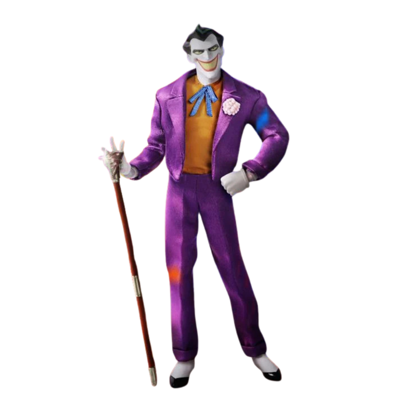 The One:12 Collective The Joker is dressed to kill in his classic purple suit, bowtie, and boutonnière. Four interchangeable head portraits with varying facial expressions are included, capturing his exaggerated, maniacal visage.