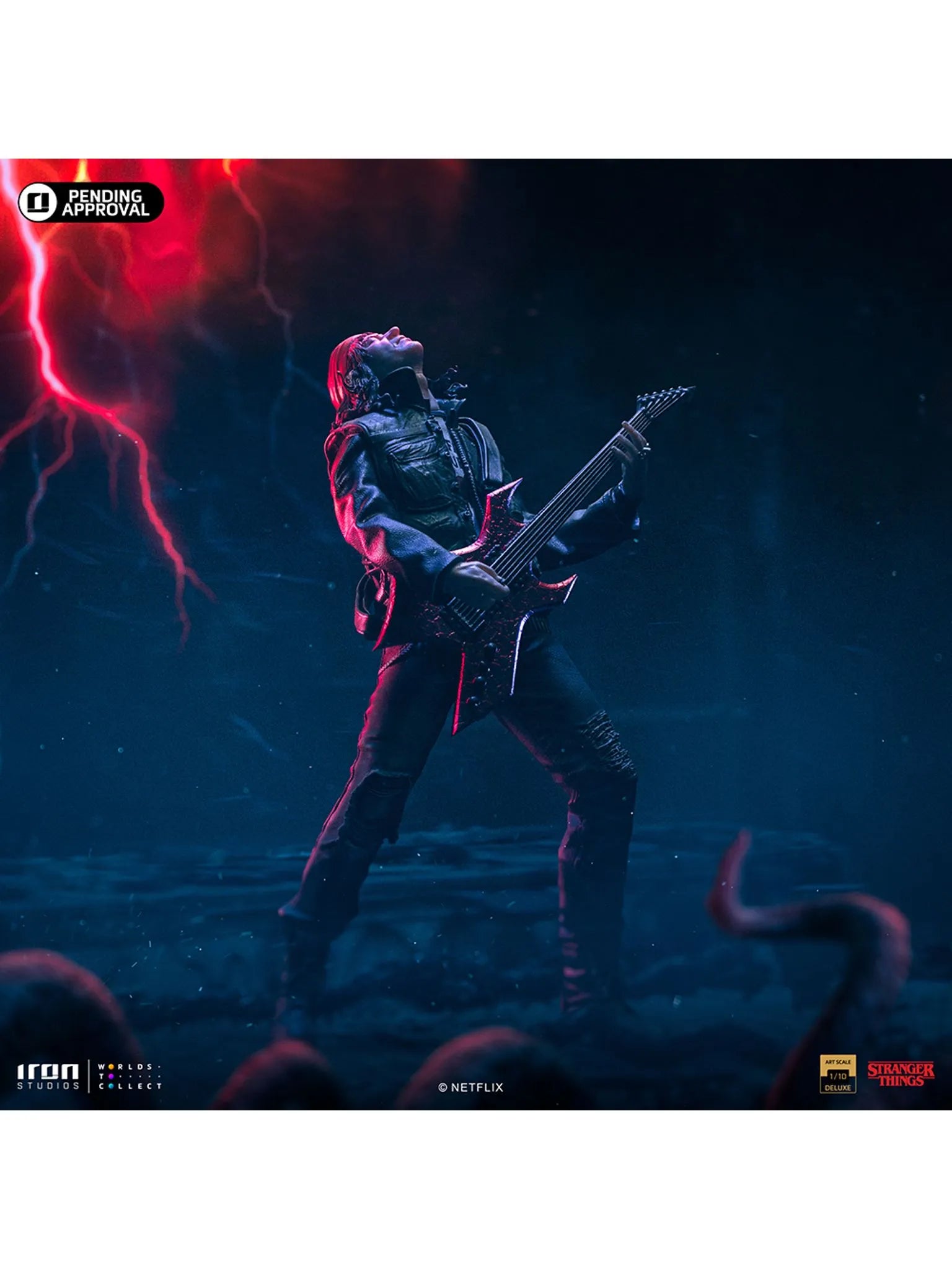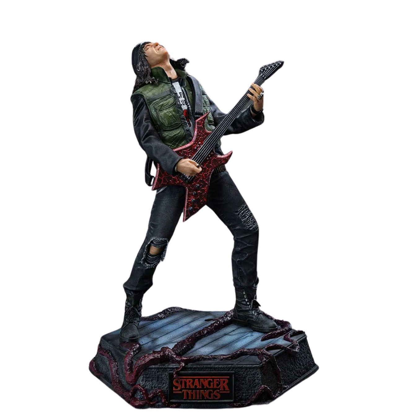 The statue Eddie Munson - Stranger Things - Deluxe Art Scale 1/10 will be produced in limited edition. The diorama base present rich details inspired by the original references.