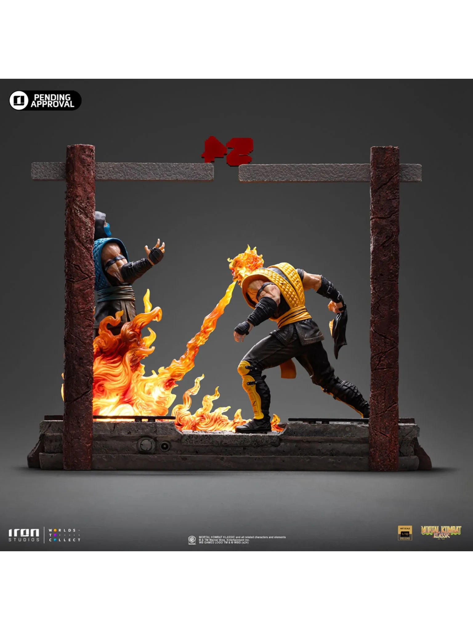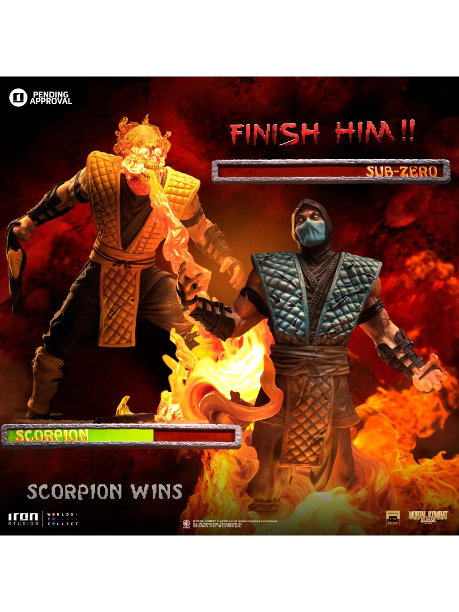 Who is Scorpion? Mortal Kombat is a martial arts tournament held between different realms or dimensions from generation to generation. Winning the tournament ten times in a row grants the victor the chance to dominate the host realm. As a conqueror, Shao Kahn seeks to expand the Outworld by forcibly taking over other realms. He is determined to secure victory when the Mortal Kombat tournament is held in Earthrealm, the realm humans know as Earth. Scorpion, once known as Hanzo Hasashi in his human form, was killed by Bi-Han (Sub-Zero) and resurrected two years later as a ninja specter. A former member of the Japanese Shirai Ryu ninja clan, he earned the codename "Scorpion" due to his deadly skills. His signature moves include the Kunai spear and his hell fire. Bi-Han, Scorpion's great rival and the one responsible for his death, was the first Sub-Zero and a member of the Chinese Lin Kuei ninja clan from Outworld. After his death at the hands of the resurrected Scorpion during the tournament, his younger brother Kuai Liang, who also wields the power of ice, took on the mantle of Sub-Zero to avenge his brother and eliminate Scorpion, perpetuating the cycle of vengeance. Exploring the Scorpion Fatality statue: In the depths of Netherrealm, the hellish underworld of Mortal Kombat, two legendary ninja warriors face off in their ultimate battle. Driven by vengeance, the spectral spirit of the Japanese Shirai Ryu ninja clan reveals his true form, exposing his fiery skeletal face and delivering his fatal move—unleashing an infernal breath upon his frozen opponent, who suffers agonizingly as he is burned alive after having fought against his oldest archenemy. Iron Studios presents the "Scorpion Fatality - Mortal Kombat - Deluxe Art Scale 1/10" statue, featuring two of the most iconic characters from the legendary fighting game in a diorama where all flames—from Scorpion's head to Sub-Zero's feet—light up with LED effects, capturing a duel that ends in a fatality for one of the opponents. Figure details: The statue was designed with extreme attention and care, based on the official references, ensures an impressive display of the figure in any environment. Special features: The statue Scorpion Fatality - Mortal Kombat - Deluxe Art Scale 1/10 will be produced in limited edition. The diorama base presents rich details inspired by the original references. Materials and finishing of the piece: Just like all the other statues manufactured by Iron Studios, the statue Scorpion Fatality - Mortal Kombat - Deluxe Art Scale 1/10 will be made with high-quality materials such as Polystone, and may contain parts in resin, PVC, metal, and fabric. For the finishing, the hand-painted statue ensures a unique and exclusive artistic touch to satisfy any collector. Revealed for the first time at CCXP 24, this Deluxe version is the first statue inspired by one of the game's most iconic moves. Now available for Pre-order, discover more upcoming releases on Iron Studios’ social media and YouTube channel!