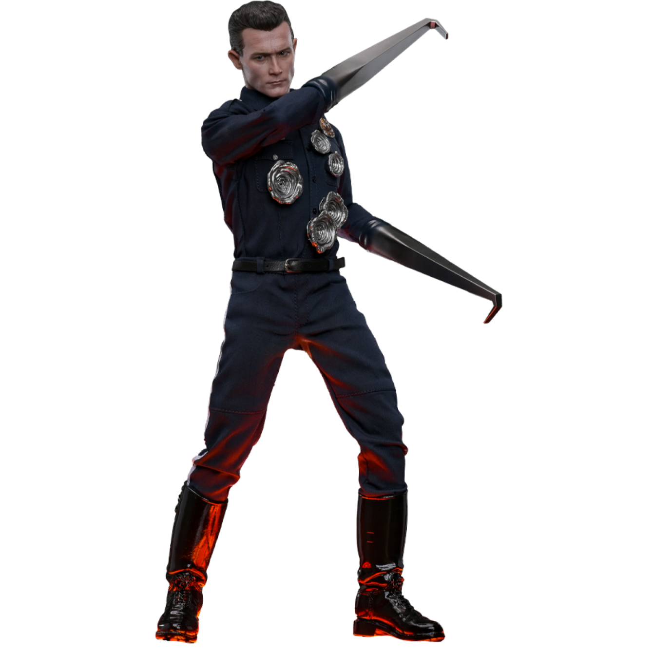 Crafted based on T-1000's screen appearance in the film, the new version of T-1000 Sixth Scale Collectible Figure features two newly developed head sculpts with separate rolling eyeballs: a regular version and a battle-damaged version with liquid metal revealing design, along with three liquid metal effect forearms. His costumes are also faithfully recreated from a police jacket, a dark blue-colored shirt with details, two pairs of pants for different outfit options, a utility belt, to three types of shoes, including one in liquid metal effect. More detailed accessories and weapons elevating your display include a helmet, a flashlight, a walkie-talkie, a pair of sunglasses, a pair of handcuffs, a submachine gun, a pistol and a set of magnetically attachable liquid metal effects. It also comes with a specially designed steel mill themed LED lighted diorama figure base to replicate the battle scene.