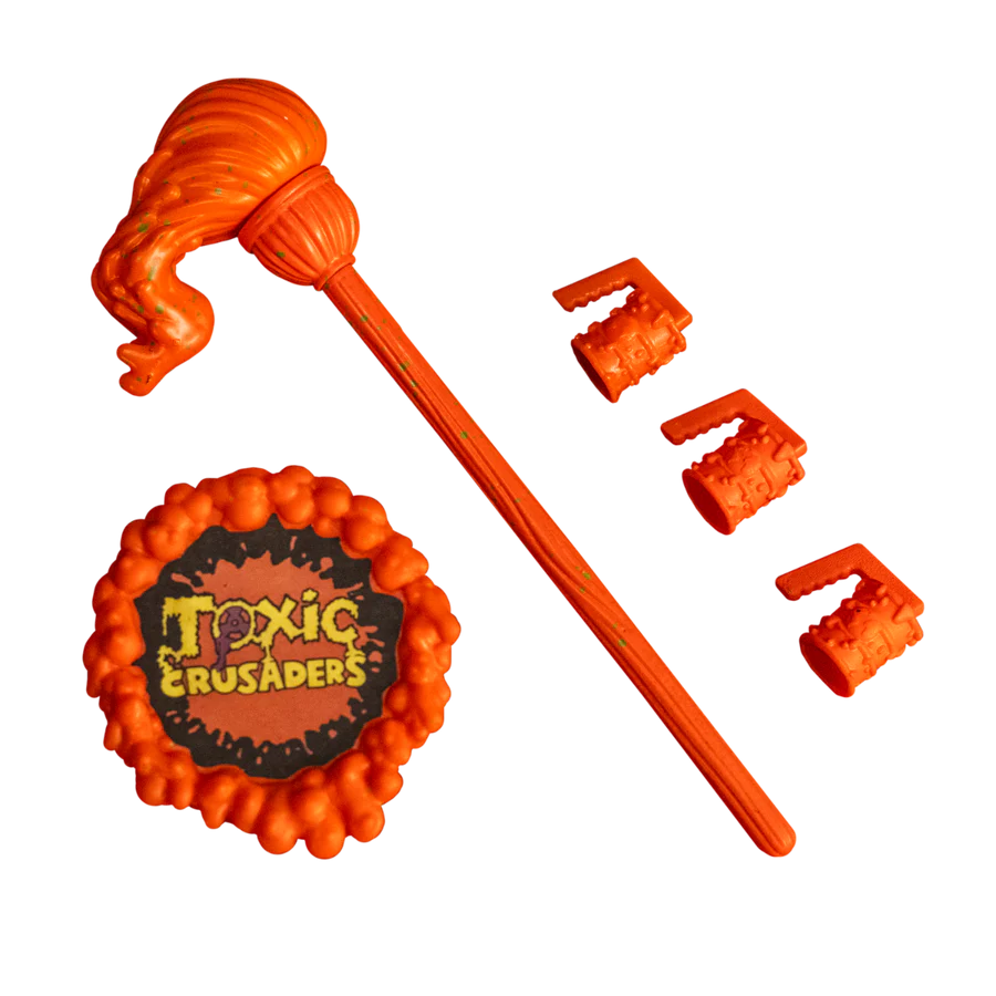 This Toxie figure was developed with the help of Varner Studios, who designed the original 90's Toxic Crusaders toy line! The Likable Lumpy headed hero Toxie comes complete with Shield, Toxic Bandolier, Toxic Waste Drum Grenades, and Secret Glo-in-the-dark Weapon plus SLIME!