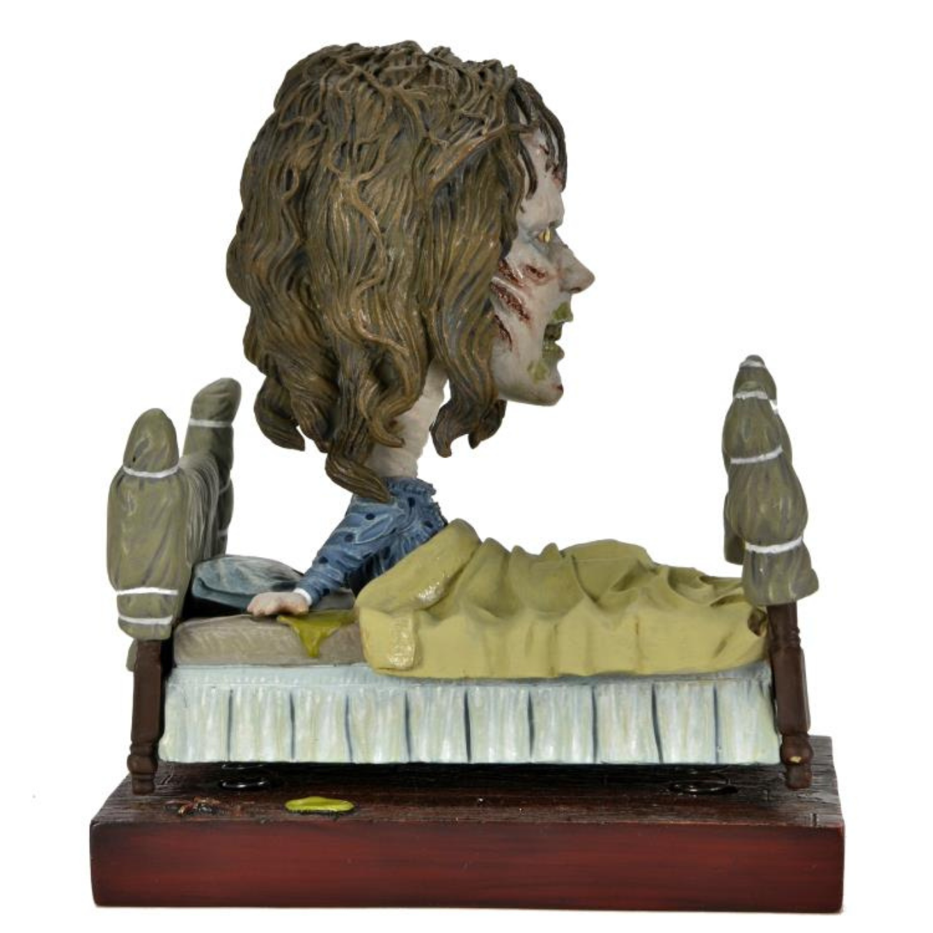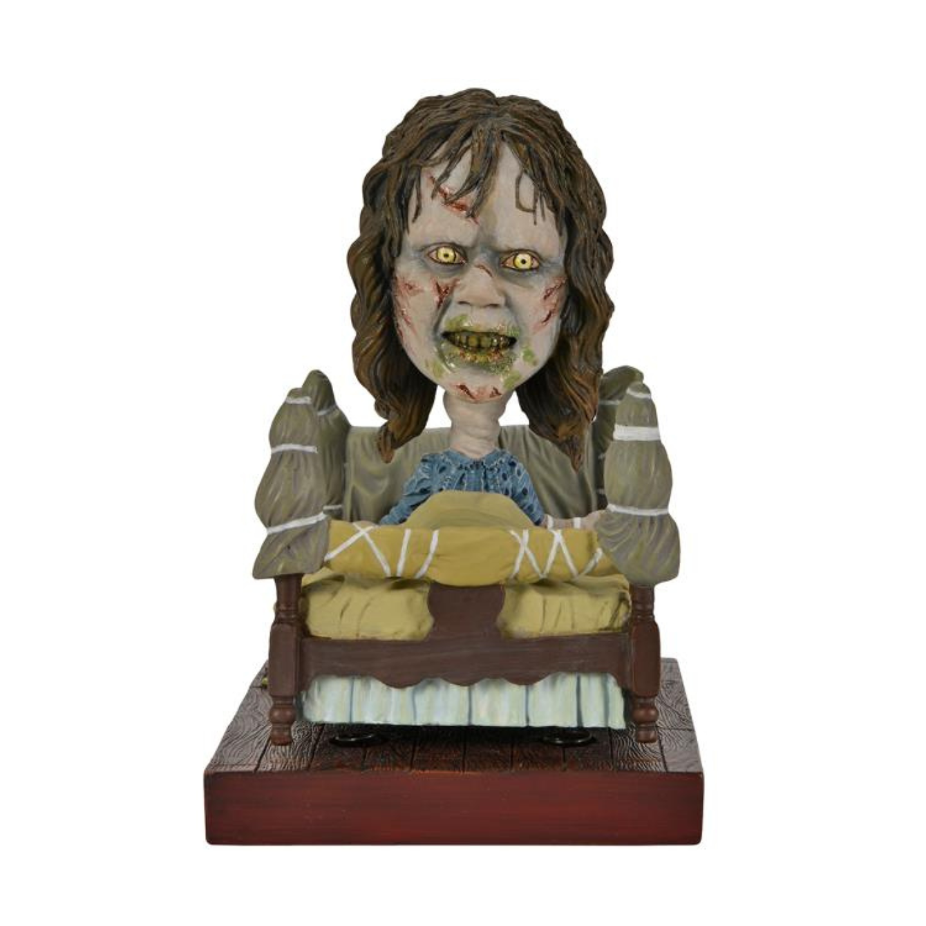A cornerstone of the horror movie genre, The Exorcist has terrified generations of viewers. The 12-year-old Regan has been possessed by the devil, and only an exorcist can save her! This addition to the popular Head Knocker line brings you Regan, cast in resin and then hand painted for incredible detail. Regan stands 5.5 inches tall with bobbling bed and bobbling head and comes in collectible matte packaging with spot gloss finish.