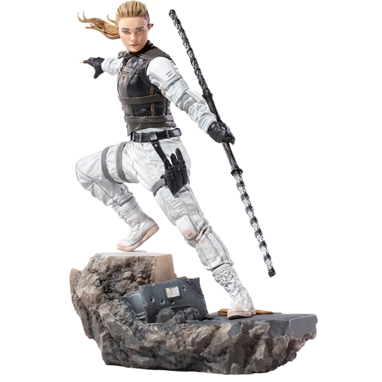 Iron Studios presents the limited edition statue of Yelena, Natasha Romanoff's ally in the Black Widow movie! Part of the Battle Diorama Series, she stands on a base of debris, poised and full of movement as if about to face an opponent.