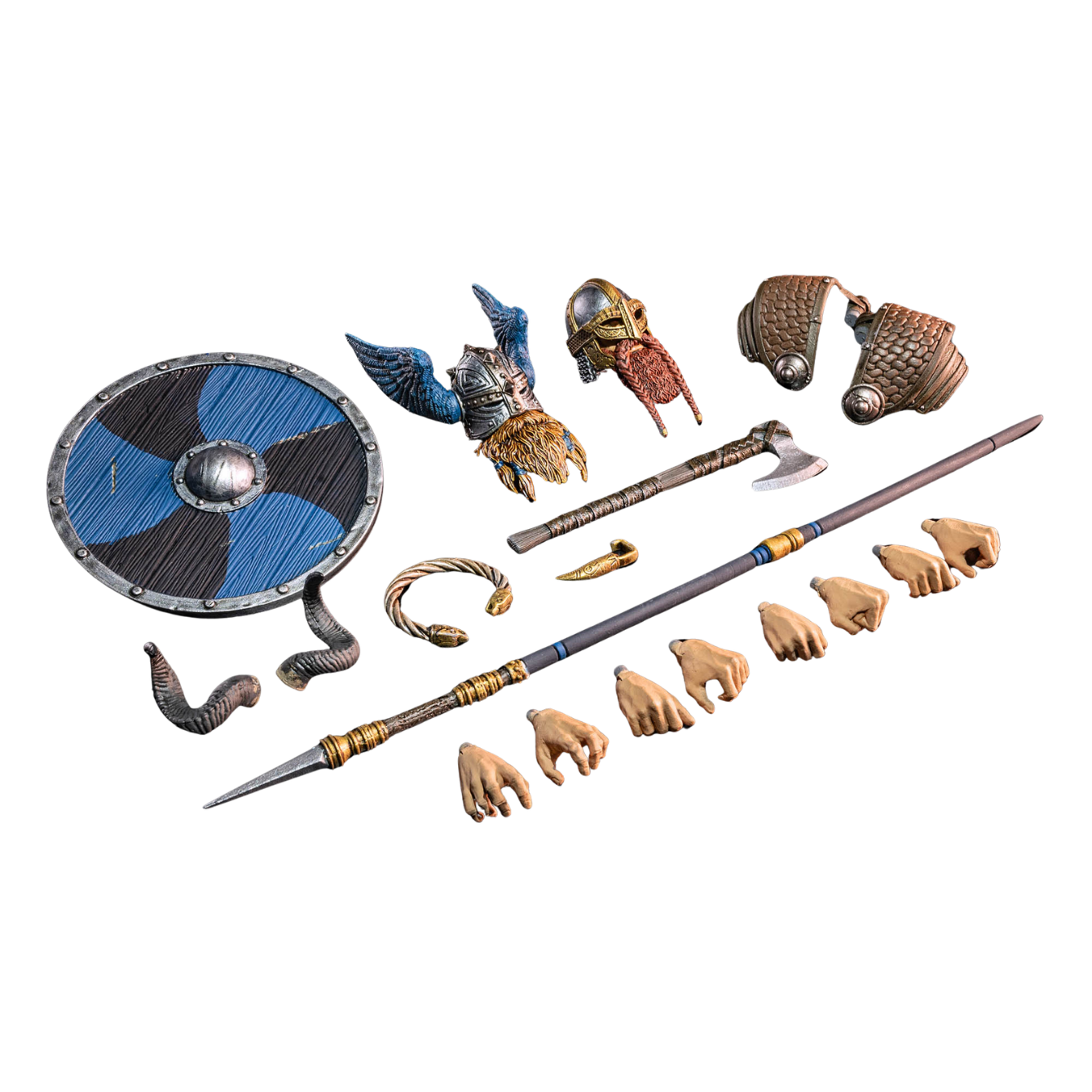 - Accessories: Viking single-bladed axe, shield, spear, 2 belt trinkets, 4 sets of hands