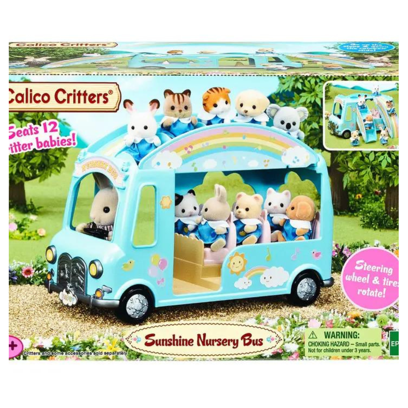 A colorful Nursery Bus that seats up to 12 Critter babies and can be uniquely decorated with included stickers sheet. Features rotating wheels and removable seats that reveal a hot tub, along with roof arches that convert to slides or see-saws for playtime.
