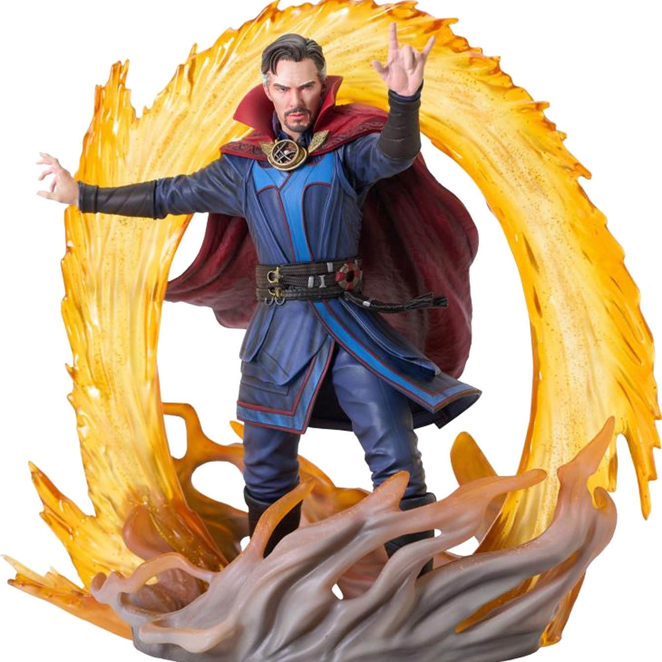 Prepare to enter the Multiverse! Doctor Stephen Strange steps through a mystical portal in this all-new Gallery Diorama, inspired by the next entry in the Marvel Cinematic Universe! With orange energy whirling around him, cape flapping in the wind, the Sorcerer Supreme stands approximately 10 inches tall and features detailed sculpting and paint applications. It comes packaged in a full-color window box. Sculpted by Gentle Giant Studios!
