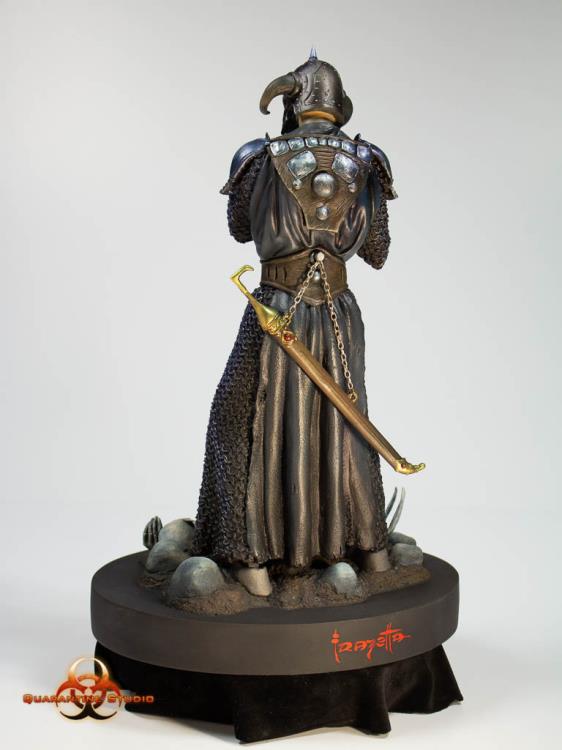 Frazetta was considered the master of fantasy art. He had the unique ability to inspire onlookers to see more than what was on the surface of his works. He painted a handful of variations of the Death Dealer during his career. Quarantine Studio wanted to bring this legendary figure out of the shadows and reveal the details Frazetta so masterfully hid in his work. Our 1/6 scale statue represents the revised version of the painting “Death Dealer 3,” featuring a faithful and detailed representation of the Death Dealer standing amid battlefield debris.