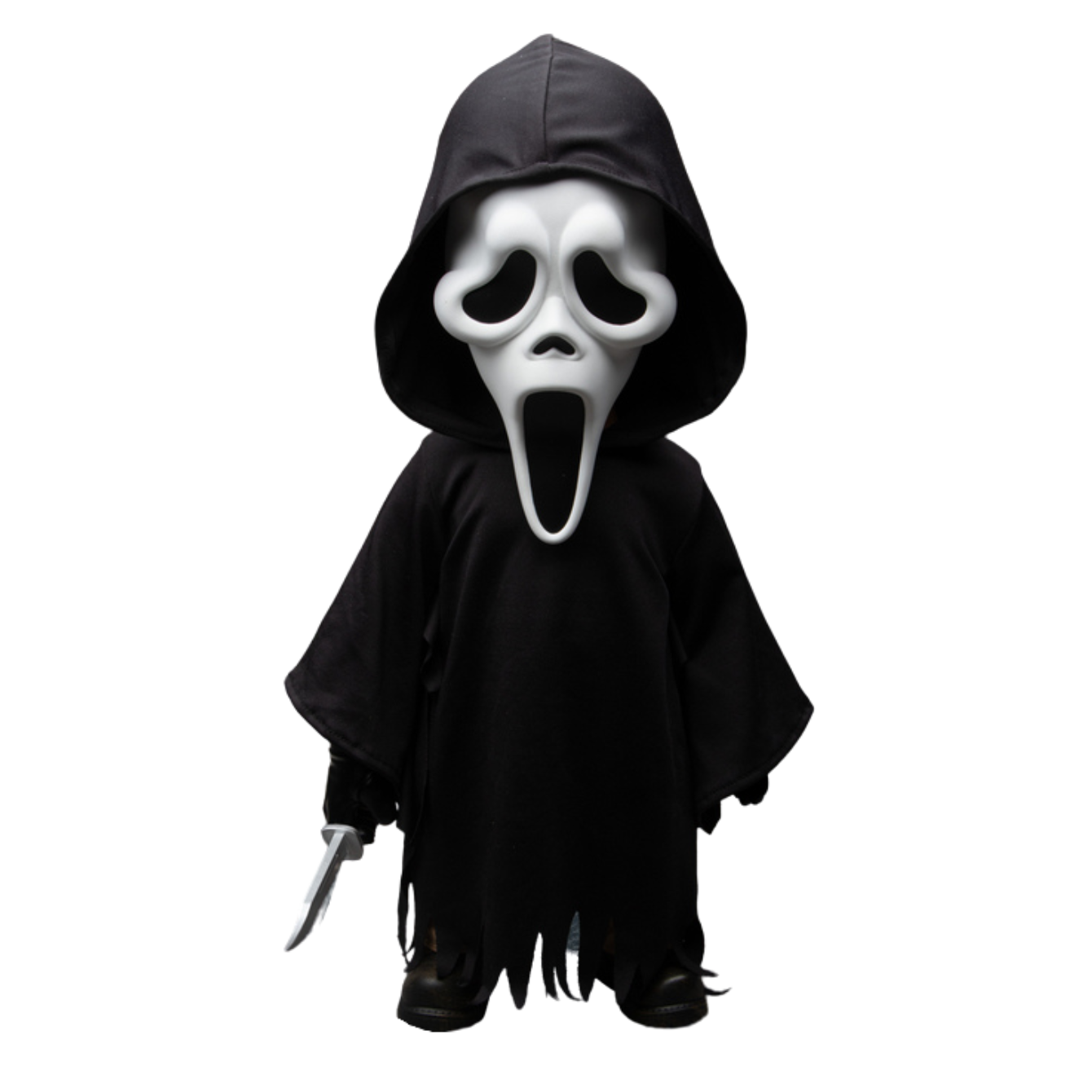 Ghost Face is outfitted in his signature hooded robe and comes complete with a hunting knife that fits neatly in his right hand. He stands at a menacing 15” tall and features 11 points of articulation.