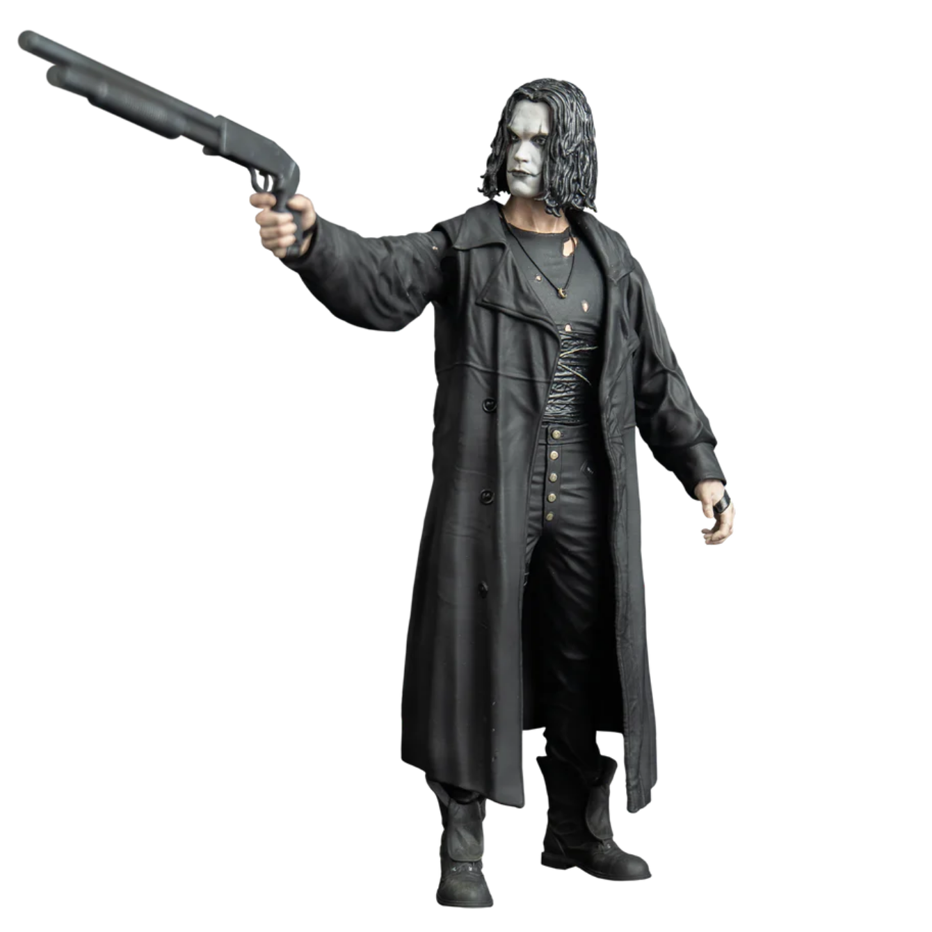 Includes: The Crow 8" Scale Figure with interchangeable hands, interchangeable arms, removable coat, and shotgun accessory.