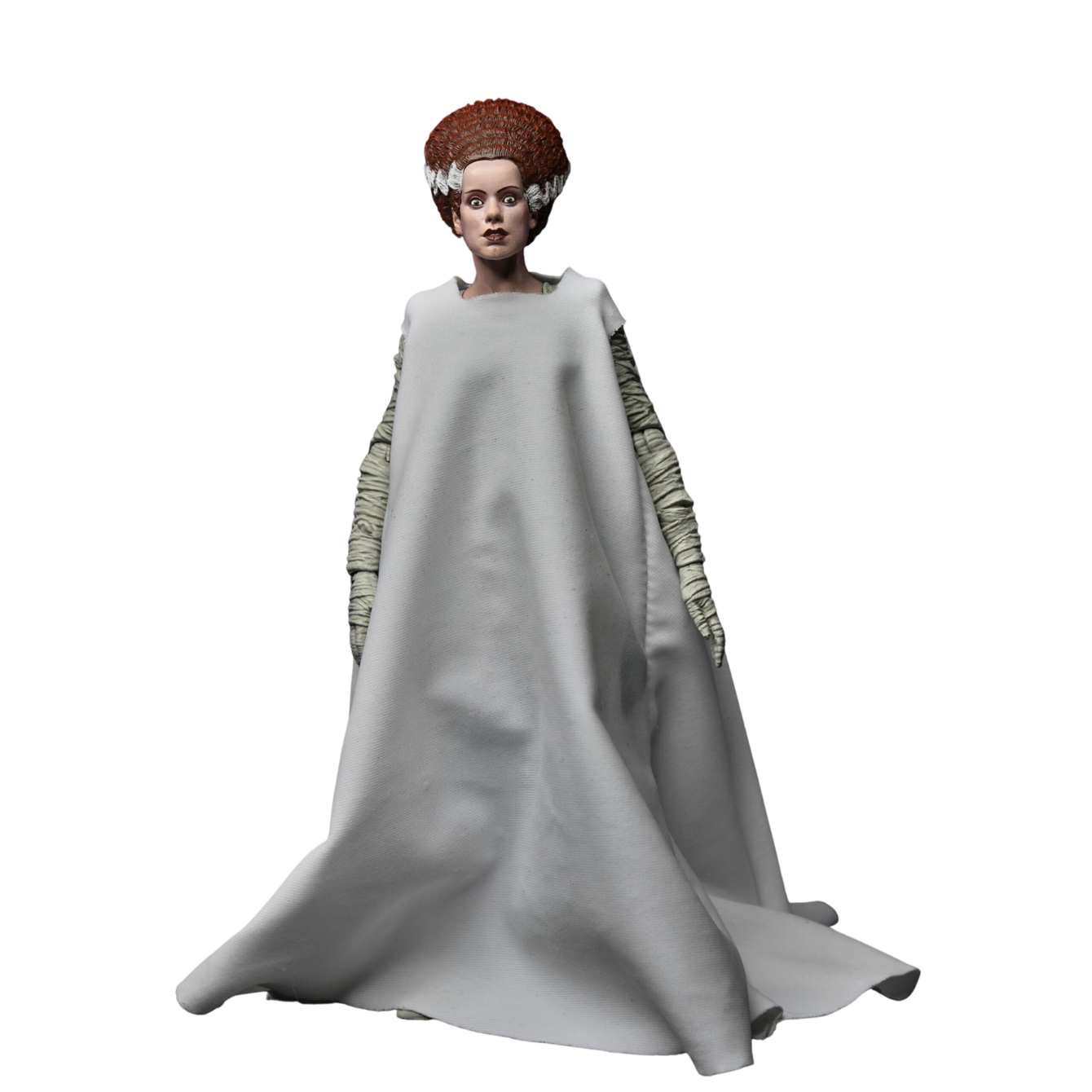 The debut of Universal’s 1935 film The Bride of Frankenstein promised audiences something “more fearful than the monster himself”! Elsa Lanchester’s portrayal of the creature stitched together to be the monster’s mate is captured in this detailed 7” scale Ultimate action figure. It comes with bandages, removable gown, two pairs of hands, and three interchangeable head sculpts. Display-friendly window box packaging with opening front flap.