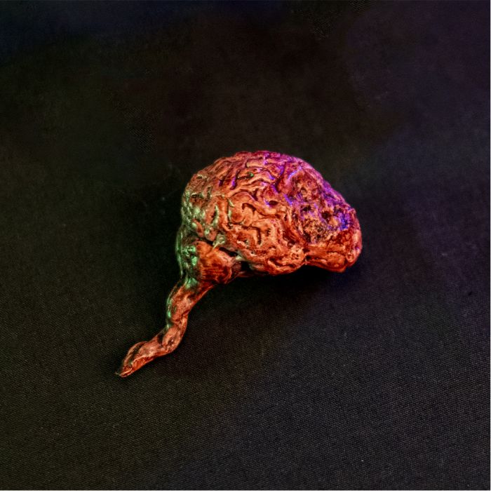And the "MORE BRAINS" head is inspired by the scene where the group unknowingly encounters Tarman (depicted by a costumed actor) in the basement as they go to help Tina. Tarman exclaims “MORE BRAINS!” after making a snack out of Suicide.