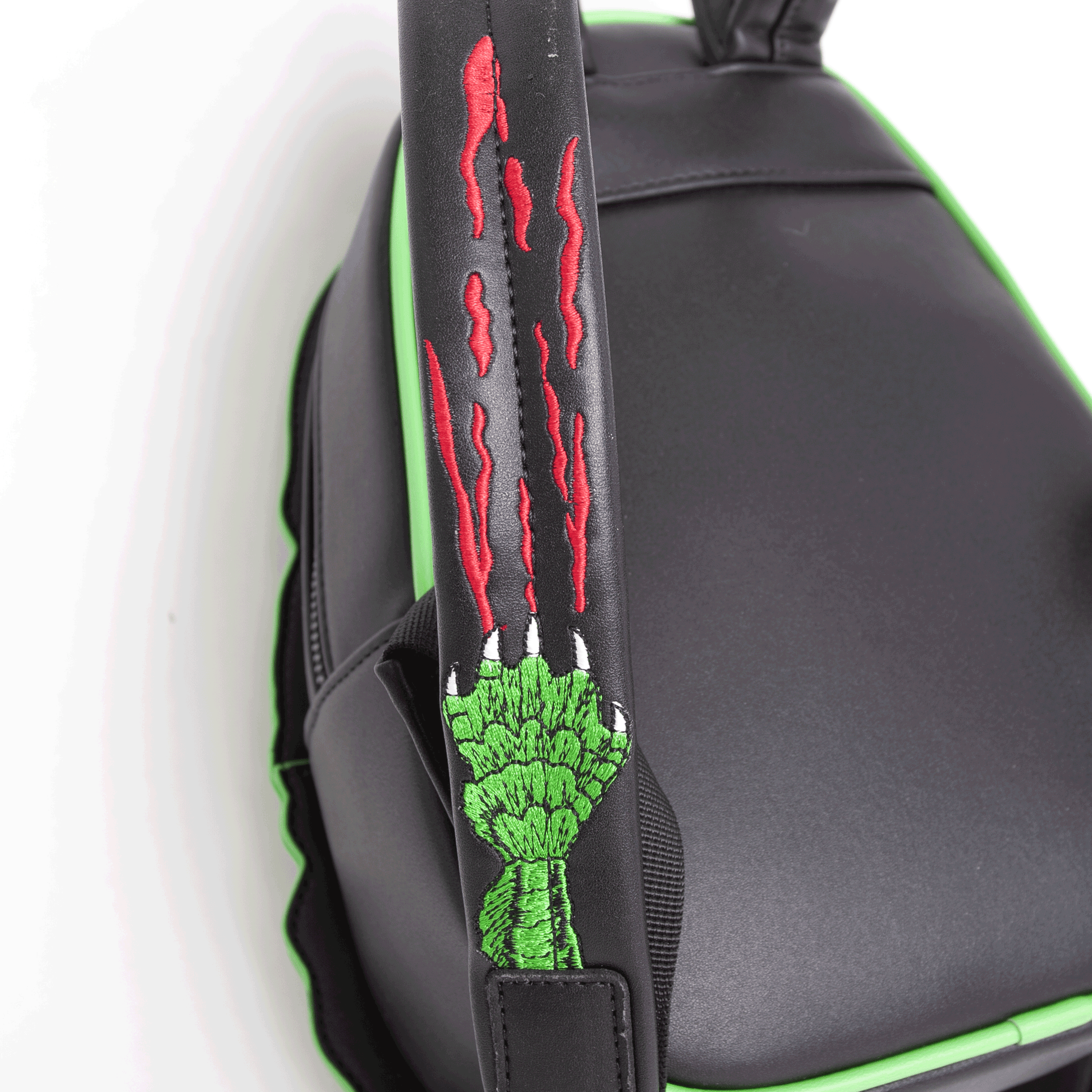 Made from high-quality PU leather, this backpack features custom embossed and embroidered details that truly bring the iconic creature to life. The custom glow-in-the-dark zipper pulls add a touch of uniqueness, while the new custom embroidered claw straps complete the look. Perfect for any horror movie lover, this backpack is a must-have accessory for those who want to make a statement.