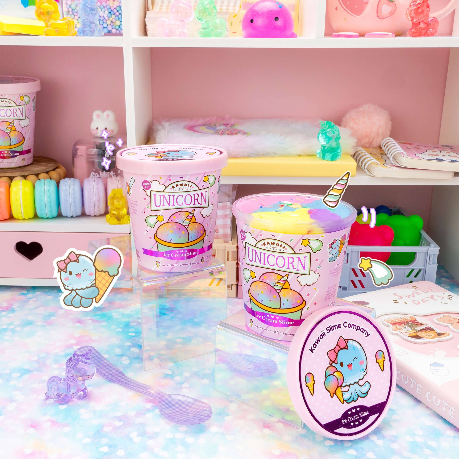 YES it's SLIME! This Unicorn scented Ice Cream Slime is every ice cream lovers dream. They look as accurate to real ice cream you won't believe your eyes... or your nose! Every flavor was carefully curated to have the most accurate aroma of REAL ice cream to take your senses on an adventure to your favorite ice cream shop, enjoying your favorite ice cream with your loved ones.